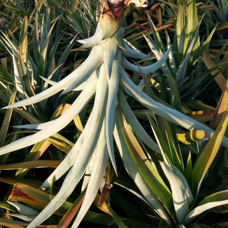 金钻凤梨属于无眼菠萝,凤梨科凤梨属植物。热带草本,无眼菠萝外皮偏绿、个头偏大,表皮下黑色圆圈小而浅,稍厚削皮即可去除,无需一个个挖除,其果肉浅黄色,味淡偏。无眼菠萝植株高大健壮,叶边无刺,便于栽培管理。无眼菠萝是菠萝中的优良品种,因其果眼少而浅,故名。无眼菠萝有冬春菠萝和夏季菠萝之分,冬春菠萝在1—3月份成熟,夏季菠萝在7月份左右才可收获。冬春菠萝上市,内含物质较为丰富,风味独特。无眼菠萝原产南非,于20世纪60年代末70年代初由缅甸引进中国。喜高温,怕寒霜、较耐旱、怕水涝,种植区域限于北热带和南亚热带地区。无眼菠萝果实大、果肉多而松软,纤维少、食用高;汁丰富、果味芳香、酸甜适口。无眼菠萝营养价值高,含有适量的糖酸和丰富的维生素丙。